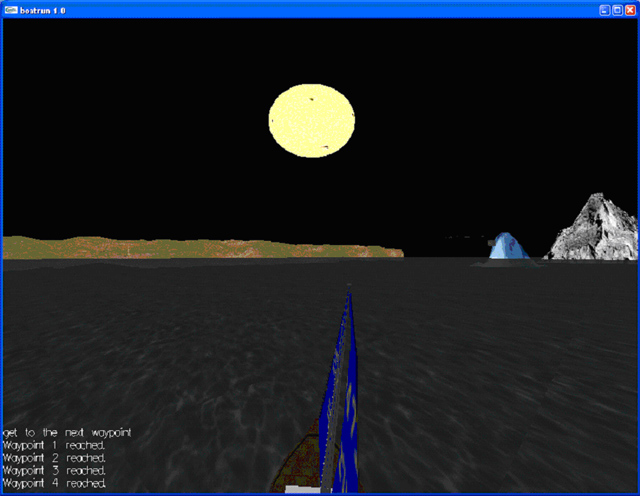 This was a team project for my Computer Graphics course. It is entitled boatrun. You can download the latest build here. We planned on doing a simple arcade style game where you sail your boat through a series of waypoints within time limits. The purpose of the project was to practice and further develop our 3D graphics knowledge. Our presentation was April 17th 2007.