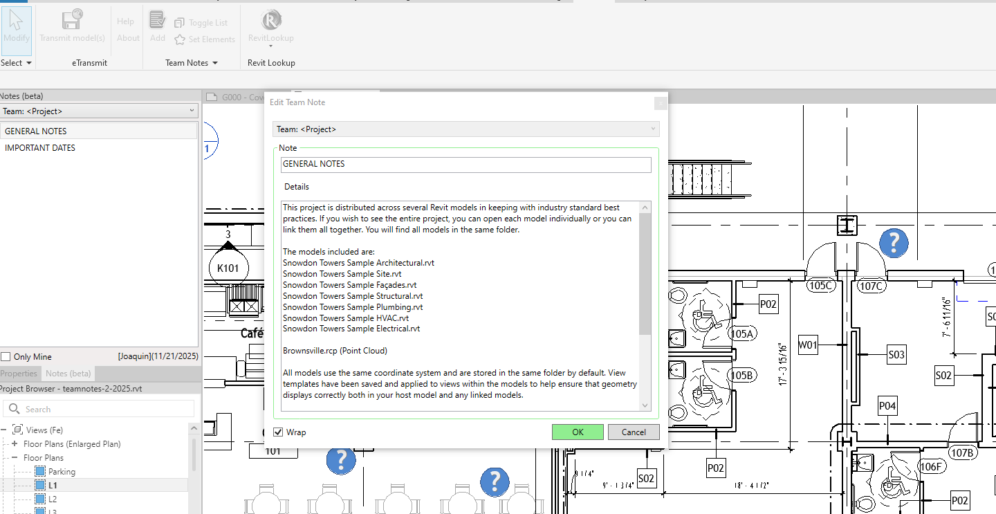 The basis of the tool is to allow users to add notes and associate them to any building object. This allows teams to better coordinate their work by allowing them to be specific about areas in the building that require attention.